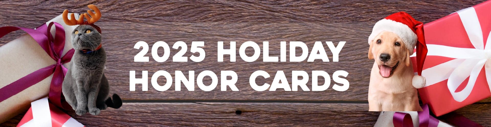 This holiday season, make a donation in honor of someone special. Your gift helps provide shelter, care, and love to animals in need—and your honoree will receive a personalized holiday card letting them know they’ve inspired kindness and compassion.